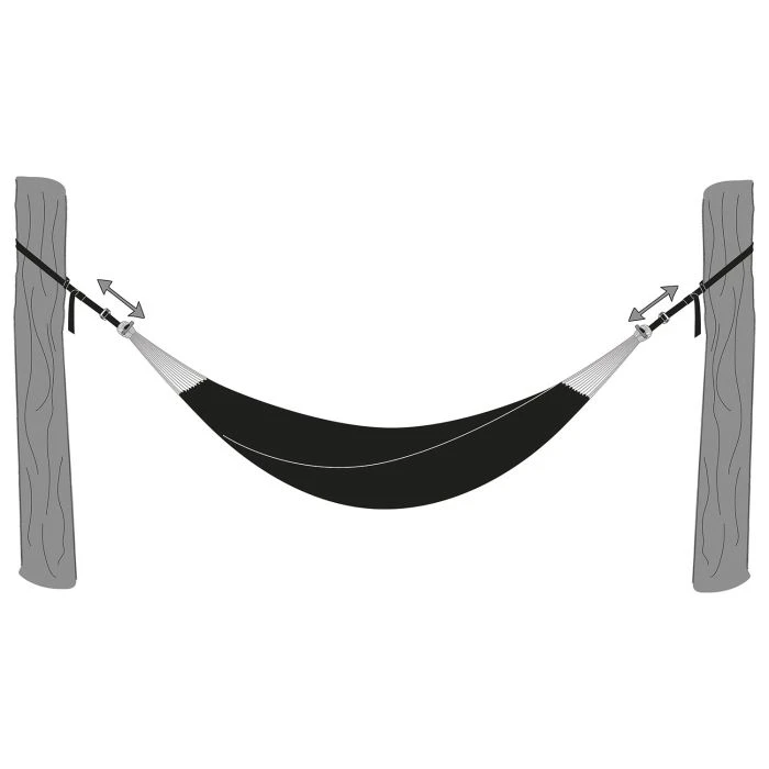 Die Amazonas Hängematten Aufhängung T-Strap ist ein baumschonendes Aufhänge-Set für alle Hängematten. Dank der extra-breiten Baumumfassung ist das T-Strap besonders schonend für die Natur und schneidet nicht in die Baumrinde ein. Set mit zwei speziellen Befestigungsgurten zum Aufhängen von Hängematten. Der Haltestift aus Aluminium dient als praktische Verbindung zur Hängemattenschlaufe. Einmal durchgesteckt stellt er sich quer und hält dann richtig fest. Das 25 mm breite Band schont die Bäume. Die Gurte sind jeweils – dank der Verstellschnalle – stufenlos von 15 bis 220 cm Länge verstellbar. Insgesamt ergibt sich so ein Verstellbereich von 30 bis 440 cm.