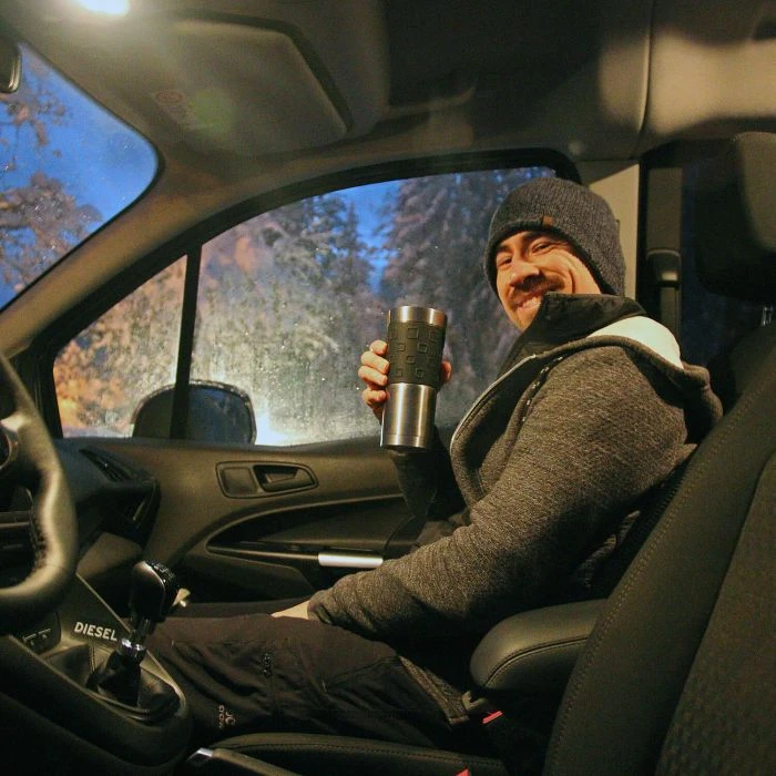 Dieser stylische Thermobecher aus doppelwandigem Edelstahl hält deine Getränke lange warm oder auch kalt. Dank der 360° Öffnung kannst du den Becher problemlos mit einer Hand bedienen und wie aus einer Tasse vom Becherrand trinken. Das gummierte Band ermöglicht eine rutschfeste Griffzone. Der Druckknopfverschluss ist in zwei Teile zerlegbar und kann somit problemlos gereinigt werden. Zudem ist der Thermobecher spülmaschinenfest und 100% dicht. Perfekt geeignet für unterwegs, im Auto, beim Wandern, zu Hause oder in der Arbeit.