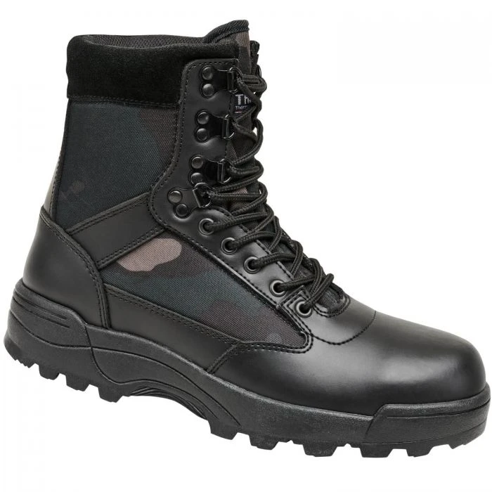 Der SWAT Tactical Boot ist ein robuster und strapazierfähiger Stiefel der vor allem durch seine Kombination aus starkem Leder- und Cordurabesatz punktet. Für hohen Komfort, warme Füße und einen sicheren Stand sorgen der gepolsterte Stiefelschaft/Lasche, die eingearbeitete Thinsulate-Isolierung, die praktische 9-Loch-Schnürung sowie die profilierte Antirutsch-Synthetiksohle. Versen- und Zehenbereiche sind verstärkt. Schafthöhe: ca. 21,5 cm. Gewicht: ca. 538 g. Obermaterial: 100% Cordura-Nylon & Echtleder. Futter: 100% Polyamid.