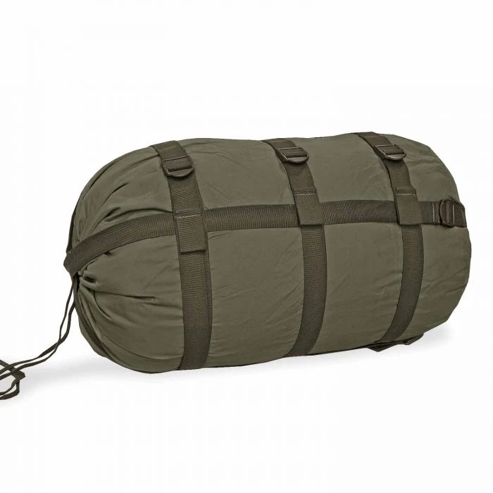 Der Bundeswehr Schlafsack Typ Allgemein II mit Kompressionssack in Mumienform der Deutschen Bundeswehr ist ein sehr beliebter, hochwertiger und dicker Mumienschlafsack mit robustem 2-Wege-Reißverschluss und beidseitiger Schutzleiste. Der Schlafsack ist passend bis zu einer Körpergröße von 210 cm verwendbar.