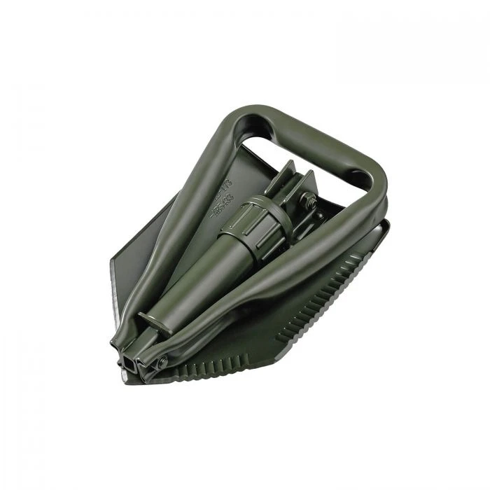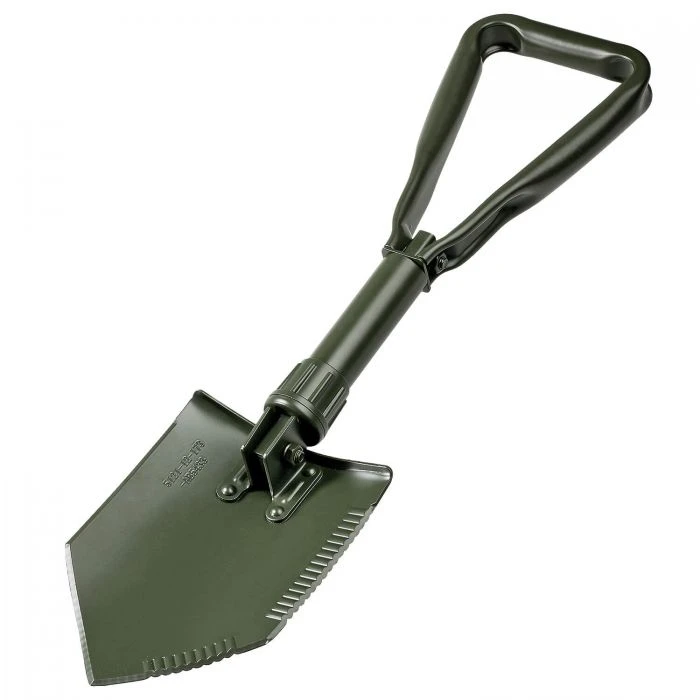 Bei diesem Feldspaten der Bundeswehr handelt es sich um eine Neuanfertigung nach Bundeswehr TL. Der Spaten besteht aus Schaufelblatt, Stiel und Griff. Durch das Lösen der Drehschraube ist der Spaten 2-fach klappbar, hat somit ein geringes Packmaß und lässt sich platzsparend verstauen. Sowohl bei der Gartenarbeit als auch auf Outdoorausflügen, beispielsweise zum Graben einer Feuerstelle, erfreut sich der Klappspaten zunehmender Beliebtheit.