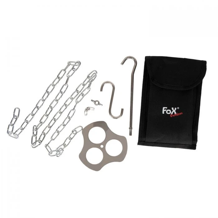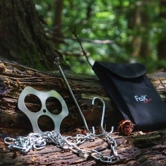 Platzsparend und praktisch, erweist sich der Dreibeinhalter von Fox Outdoor nicht nur unterwegs als nützliches Werkzeug. Anstatt umständlich ein wackeliges Gerüst für deine Feuerstelle zu konstruieren, bist du mit dem Halter im Handumdrehen fertig. Einfach drei passende Äste oder Hölzer durch die Löcher stecken, leicht verdrehen und fertig.