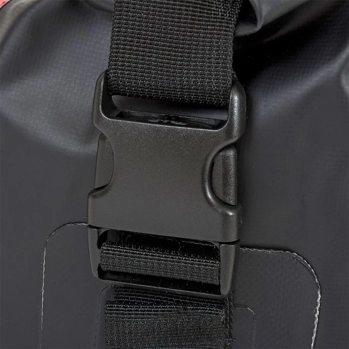 Durch die große Öffnung mit Roll- und zusätzlichen Clipverschluss, lässt sich die Tasche einfach und schnell be- und entpacken. Die verschweißten Nähte der Tragetasche sind wasserundurchlässig, zudem schützen die seitlichen Kompressionsriemen durch eine bessere Sicherung und Verdichtung den Inhalt optimal vor Wind und Wetter.