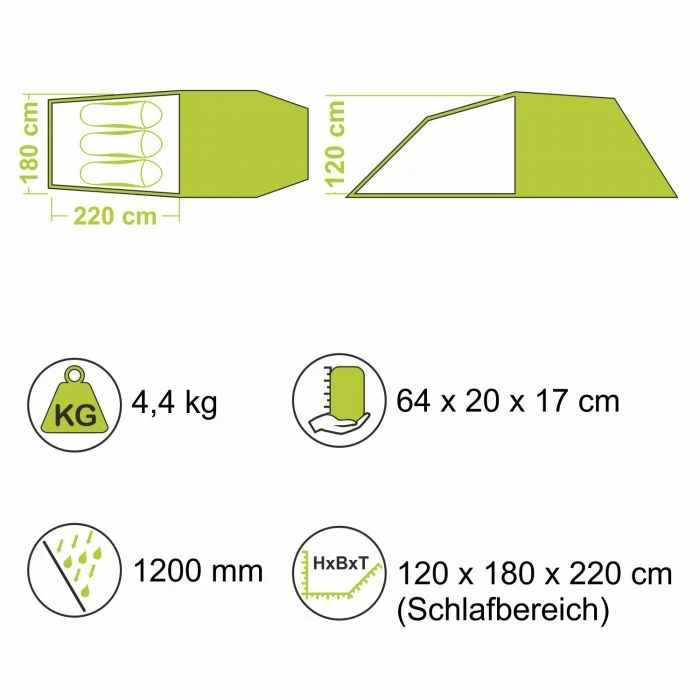 Maße Innen (HxBxT): 120 x 180 x 220 cm