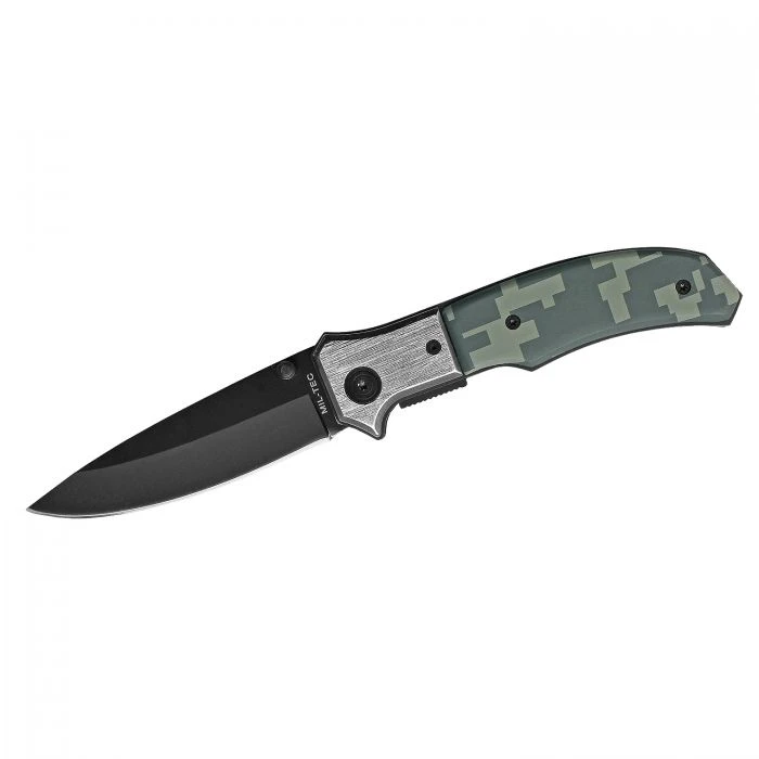 Hier kommt das Camo-farbige Einhandmesser von Mil-Tec, das an jedem eine super Figur macht.