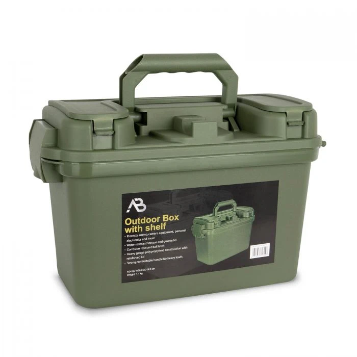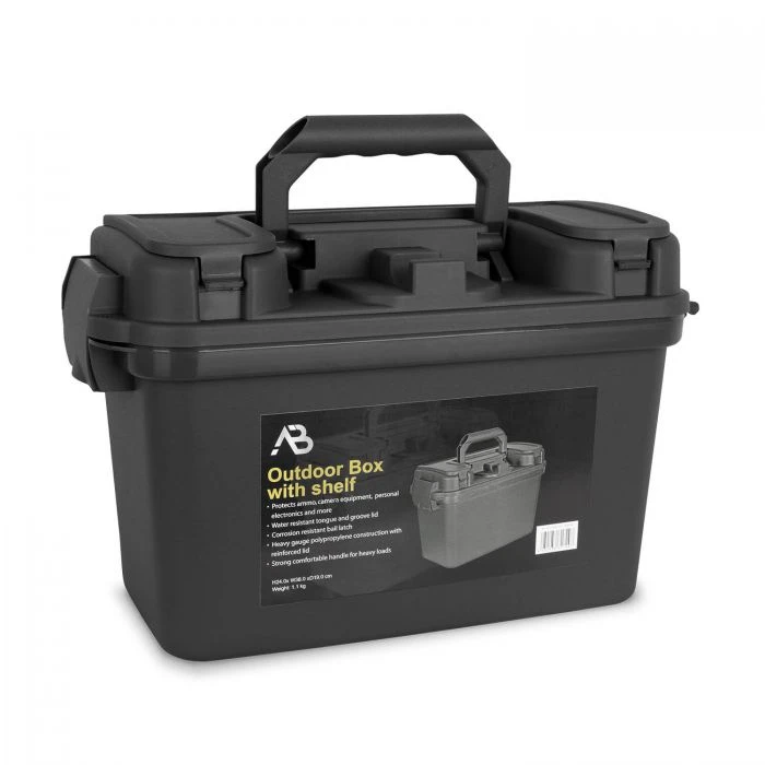 Leicht, universell einsetzbar und robust präsentiert sich die Outdoor Box mit Klapplade von Anton Blöchl. Egal ob zur Aufbewahrung oder zum Transport, dank des herausnehmbaren Innenfachs sowie dem zusätzlichen Stauraum im Deckel, finden hier große wie kleine Ausrüstungsgegenstände Platz. Aus schlagfesten, wetterbeständigen Polypropylen Kunststoff und mit vorgebohrtem Loch für ein Vorhängeschloss.