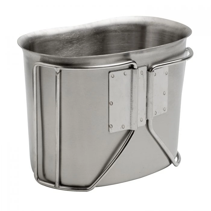 Klassischer Edelstahl Feldflaschenbecher, passend für alles US Feldflaschen (Alu und PVC). Mit einem Fassungsvermögen von 500 ml eignet sich der Becher nicht nur zum Trinken, sondern ebenso zu Zubereiten von Speisen und Getränken über dem Feuer oder Kocher. Die Edelstahltasse ist zudem leicht zu reinigen und äußerst robust.